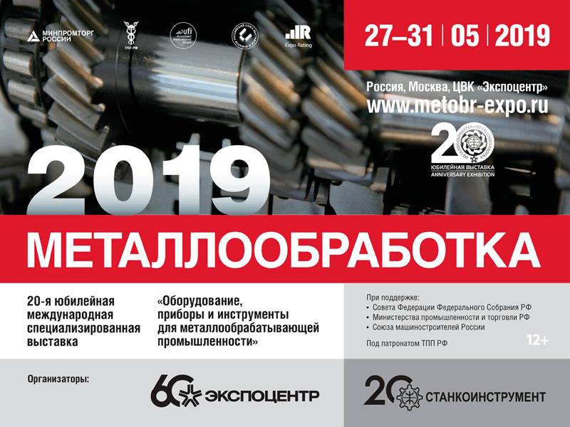 С 27 по 31 мая 2019 года компания АО "ВНИТЭП" в очередной раз участвует в международной выставке Металлообработка в Экспоцентре на Красной Пресне в Москве (ссылка на сайт мероприятия). Приглашаем посетить наш стенд № 21D55 (во 2-м павильоне, зал 1).